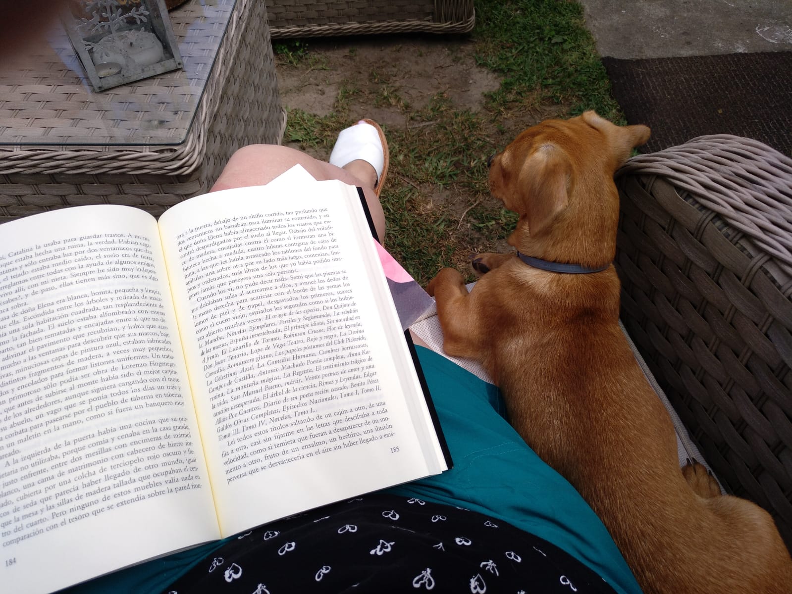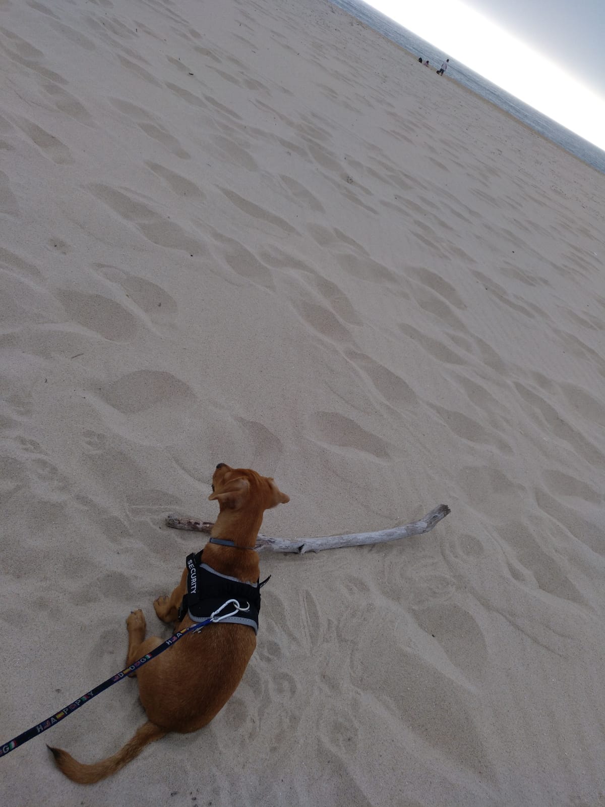 Pues el caso es que, en casa, mamá me puso el arnés y la correa para salir, pero luego se acordó de algo que tenía que hacer antes y me dijo “¡quédate aquí un momento, quédate quieto!” y yo la miré sin pestañear como si ya, desde ese momento, me hubiera quedado quieto para siempre. Pero el espíritu de los cachorros tiene super poderes y, en cuando mamá se dio la vuelta, yo empecé a ir detrás. ¡Qué horror, qué ruido más infernal el de la caja donde se enrolla la correa, dando contra el suelo de madera! Yo me asusté muchísimo, cuanto más ruido hacía más corría yo, y más ruido hacía entonces… Pude esconderme debajo de la cama; ni siquiera me di cuenta de que, al parar yo, paraba el ruido; y mamá venga a buscarme y no me encontraba en ninguna habitación. Hasta que me atreví a salir de mi escondite para correr hacia ella y ¡otra vez aquel ruido atronador que me perseguía! Menos mal que mamá nos paró en seco en medio de la carrera, a la correa y a mí. Y Sofía, observándonos tranquilamente desde el sofá, que esta vez no iba la carrera con ella.