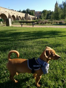Y hemos perdido el pañuelo. No sé cómo ni cuándo, pero lo hemos perdido. Quizás se enganchó con el arnés nuevo, que me gusta más que el collar porque no noto los tirones en el cuello. Yo creo que el pañuelo le gustaba más a mamá que a mí, por eso supongo que cualquier día se me presenta con otro. Cosas de mamá.