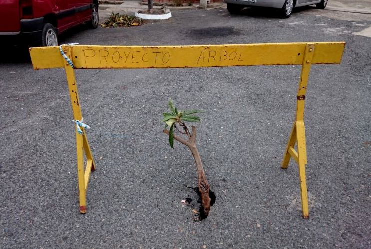 No podía dar crédito a lo que veía. Mira que ya iba mosqueado porque parecía que nadie quería pararse a hablar con él, quizás el fotógrafo que le seguía a todas partes les intimidara un poco, estaba claro que no se merecían que un político se molestara en conocer de viva voz cuales eran los problemas del barrio, pero aquello ya era el no va más; después de quince meses, del famoso agujero de los botes de humo emergía un arbolito, y en la valla alguien había escrito “Proyecto árbol” y, además, los vecinos paseaban por allí cerca sin quitarle ojo, a ver si resulta que ahora temían que el Ayuntamiento asfaltara la calle. Dio por terminado el paseo y enfiló encorajinado hacia su despacho. Al día siguiente llamó al jefe de obras y, aunque intentó sosegarse, a medida que hablaba, se enfurecía cada vez más.