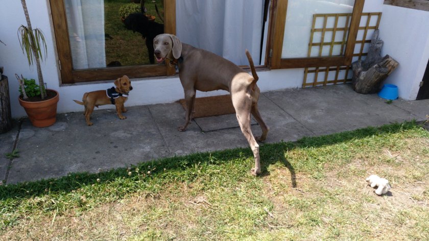 Sofía nos estaba esperando y yo corrí detrás de ella hasta que se subió a la cama de un brinco para escapar. He querido contarle cómo ha sido el viaje, pero parece que no le importa; supongo que es porque ella no ha ido. No he podido decirle que he conocido a Babos y a otros perros que andaban sueltos por allí. La más revoltosa, con mucha diferencia, era Babos, que me agobiaba por ser tan grande aunque era maja. Su papá le reñía y le decía que tuviera cuidado porque yo soy un bebé. Yo no le decía nada, porque, al fin y al cabo , él quería protegerme, pero yo no soy ningún bebé. Yo soy un cachorro que ya tiene cuatro meses, y soy capaz de correr como un perro grande. Y, si no, que le pregunten a Babos.